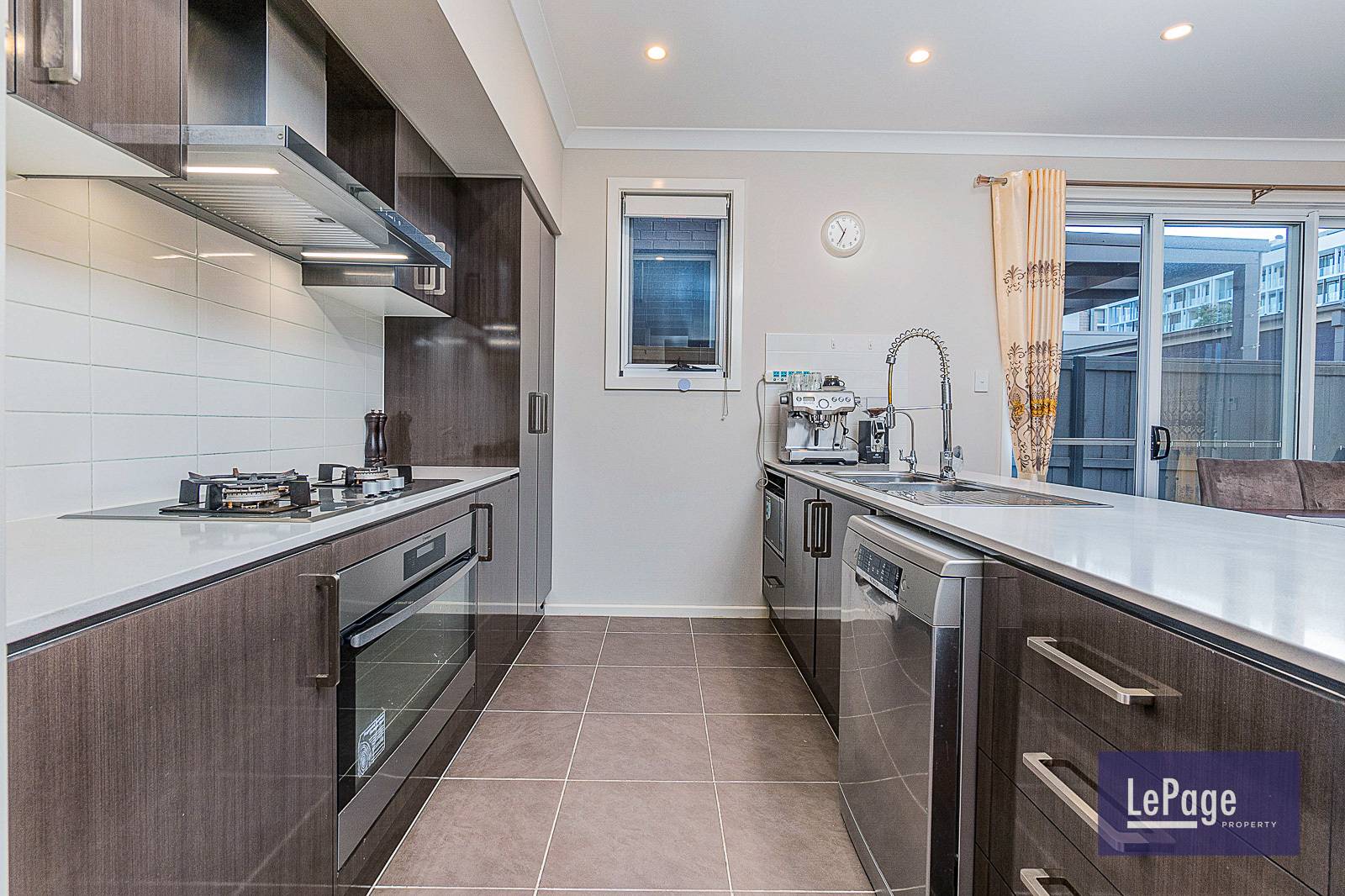 - Chef gas kitchen with stone benchtops, polyurethane cupboards and stainless - steel appliances with an abundance of storage space and fridge inlet.