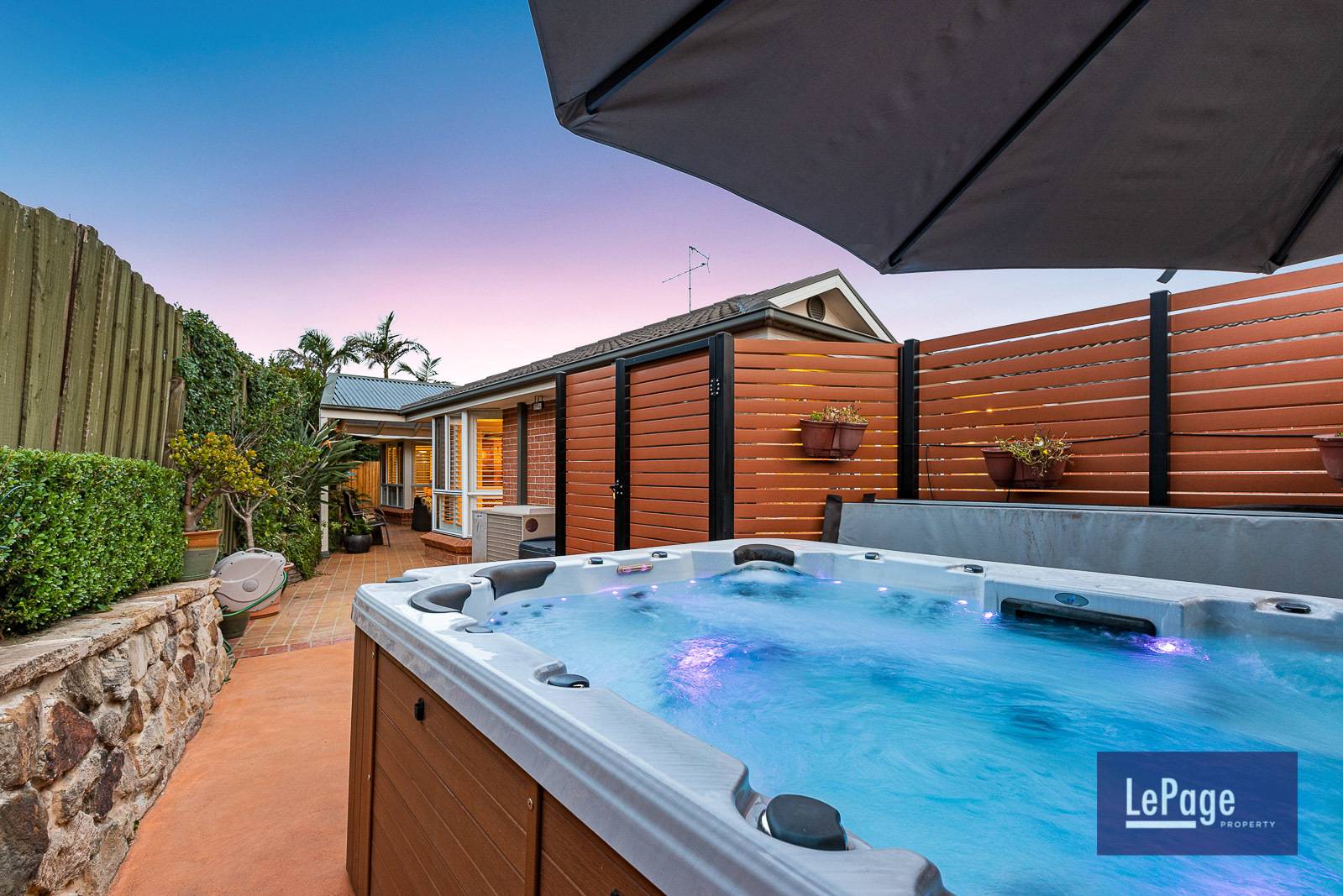 - Effortless low maintenance yard blended with enticing oversized sparkling spa for the whole family