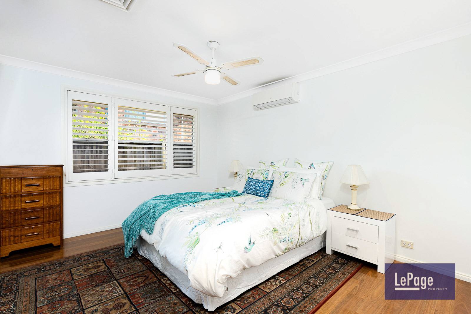 - Eye-catching formal rooms with warming gas fireplace, plantation shutters, stylish ceiling fan and bay windows overlooking the tranquil garden